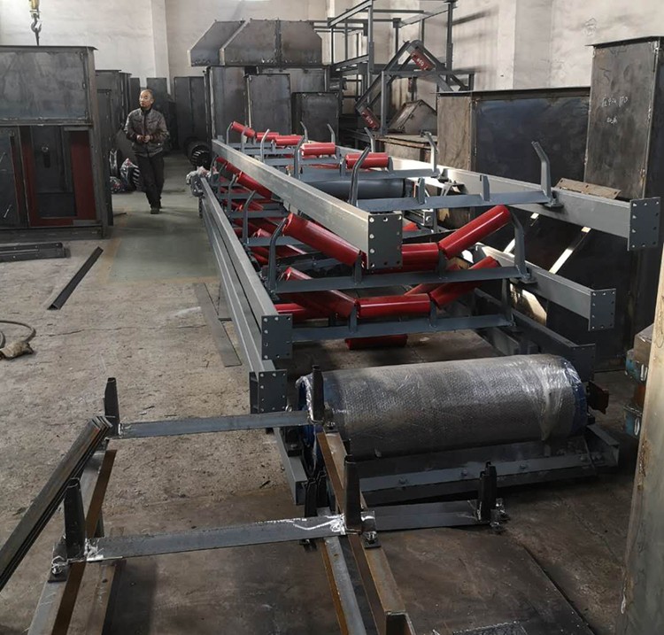 皮帶機是帶式輸送機的簡稱,有固定式和移動式,結(jié)構(gòu)簡單,效率高。以撓性輸送帶作物料承載和牽引構(gòu)件的連續(xù)輸送機械。一條無端的輸送帶環(huán)繞驅(qū)動滾筒和改向滾筒。兩滾筒之間的上下分支各以若干托輥支承。物料置于上分支上,利用驅(qū)動滾筒與帶之間的摩擦力曳引輸送帶和物料運行。適用于水平和傾斜方向輸送散粒物料和成件物品,也可用于進行一定工藝操作的流水作業(yè)線。結(jié)構(gòu)簡單,工作平穩(wěn)可靠,對物料適應(yīng)性強,輸送能力較大,功耗小,應(yīng)用廣泛。